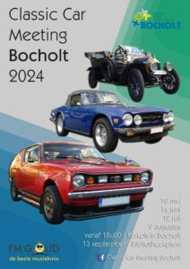 Bocholt heeft een passie voor motorvoertuigen. Met jaarlijkse evenementen zoals de Sint-Kristoffelbedevaart en de Sezoensrally zou je wel eens kunnen denken dat er benzine door de Bocholtenaar z’n aderen loopt. Voor alle eigenaars en liefhebbers van oude voertuigen organiseert de cultuurdienst oldtimerbijeenkomsten op het Kerkplein te Bocholt.